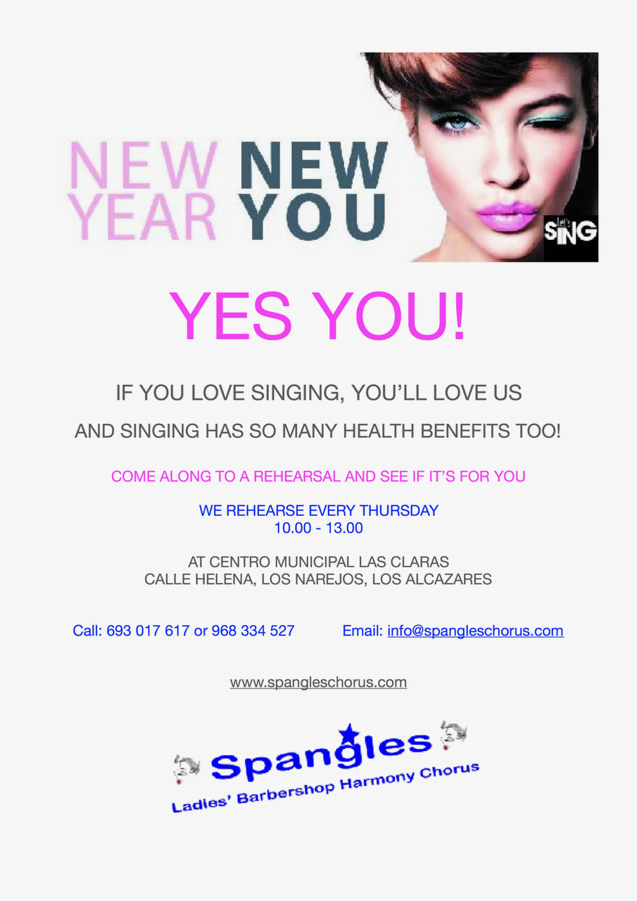 Are you looking for a New Year resolution? Want to meet new people? Sing a bit? Fancy joining this champion chorus? Spangles always welcomes new members and it’s a great way to make new friends, so why not visit when they rehearse at Las Claras from January onwards? The group meets every Thursday from 10.00 am to 1.00 pm.