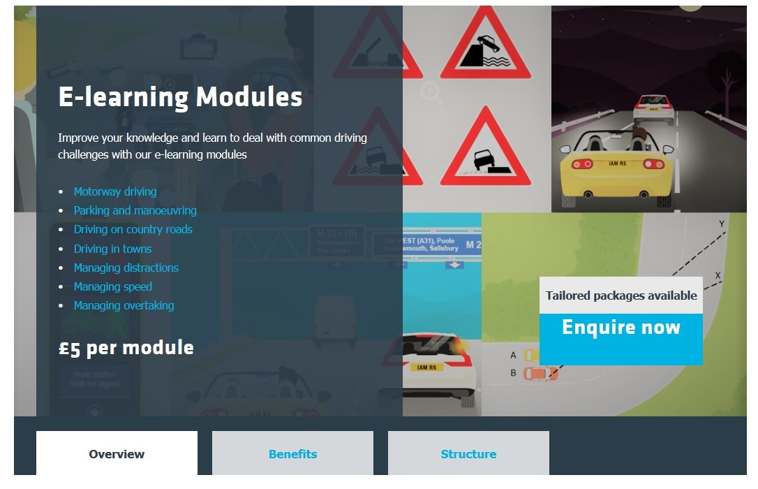 E-learning modules are also available to business and fleet operators. For more information about these, please call the IAM RoadSmart customer care team on 0300 303 1134.