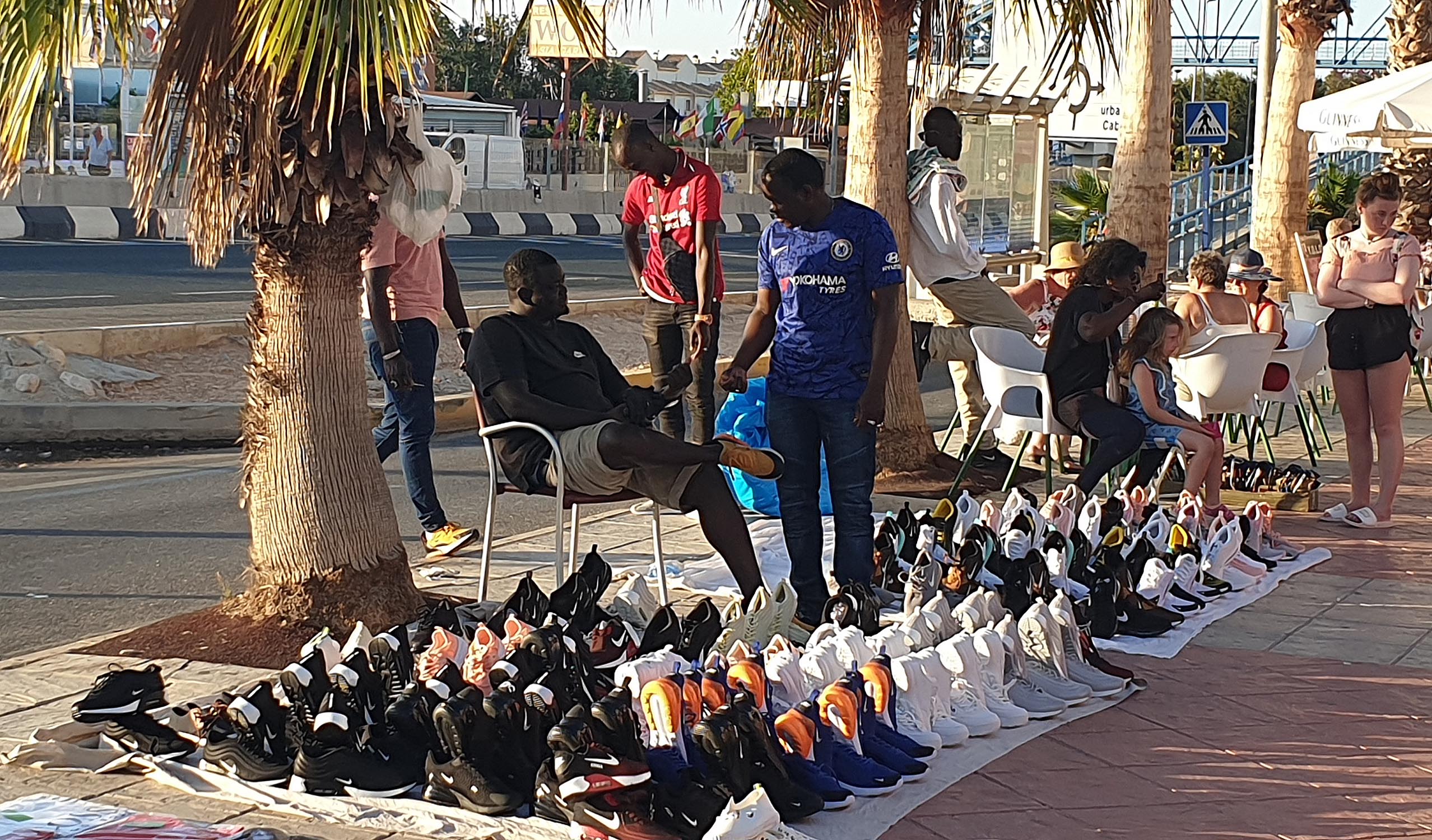 As I walked along the front of Cabo Roig strip, later that evening, I counted 53 manteros trading off blankets. These of course are in addition to the many who walk around the area with their boxes of fake sunglasses, perfumes and hats. How much longer, we wonder, will the authorities allow this to go on?