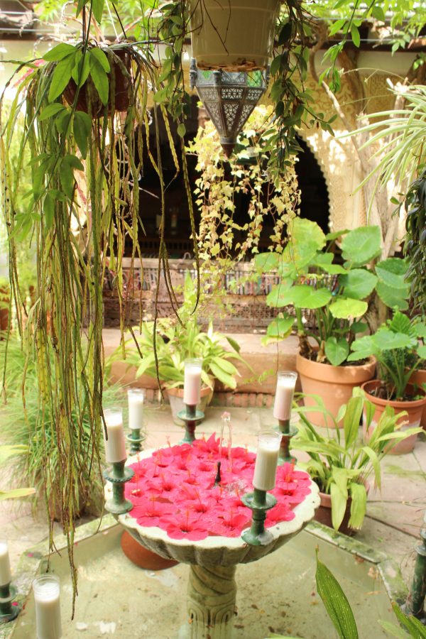 At dusk the gardens are lit by Moroccan glass lights and the peacocks call and fly between the buildings. There are many unique rooms to discover and explore, each new one makes it difficult to choose where to have your tea and mini Moroccan treats. The whole experience is truly enchanting. A real hidden gem but not too far away from the tourist packed coastline.