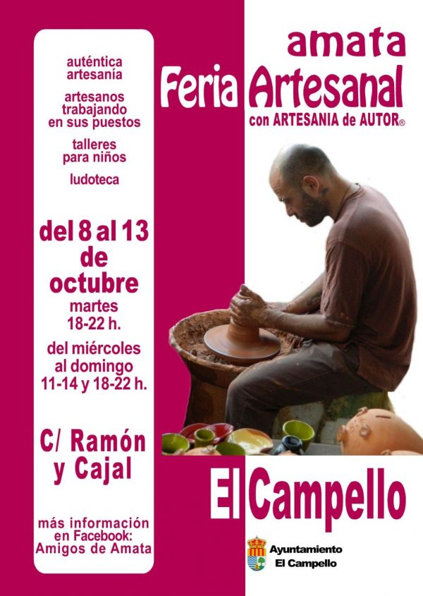 The stalls will be set up in the Plaza de la Constitución and the street Ramón y Cajal, offering a wide choice of good quality craft work: pottery, hand made sandals and shoes, glasswork, small furniture and fountains made of recycled wood, pyrography on wood or leather, paintings, small sculptures, patchwork, natural cosmetics and soap, and several stalls with jewelry, each one in a different style and using another material: silver, bronze, wood, leather, glass, fimo, ceramics or macramé. Various people will be working in their stall, so you can see for yourself how much detail, skill and patience goes into the making of each item.