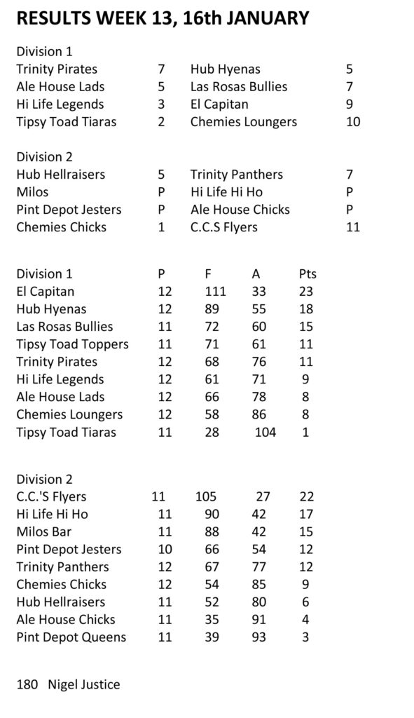 Compliments to the Pirates result sheet recorder who detailed numbers perfectly and legibly. MOTM were Cross and Taylor.