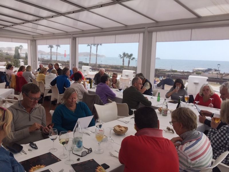 Despite the recent rains the tracks were mainly dry and the flowers were creeping out from their wnter hibernation. Everyone made their way to the restaurant, Lucero Playa, where a long table had been set out for the 30 diners.