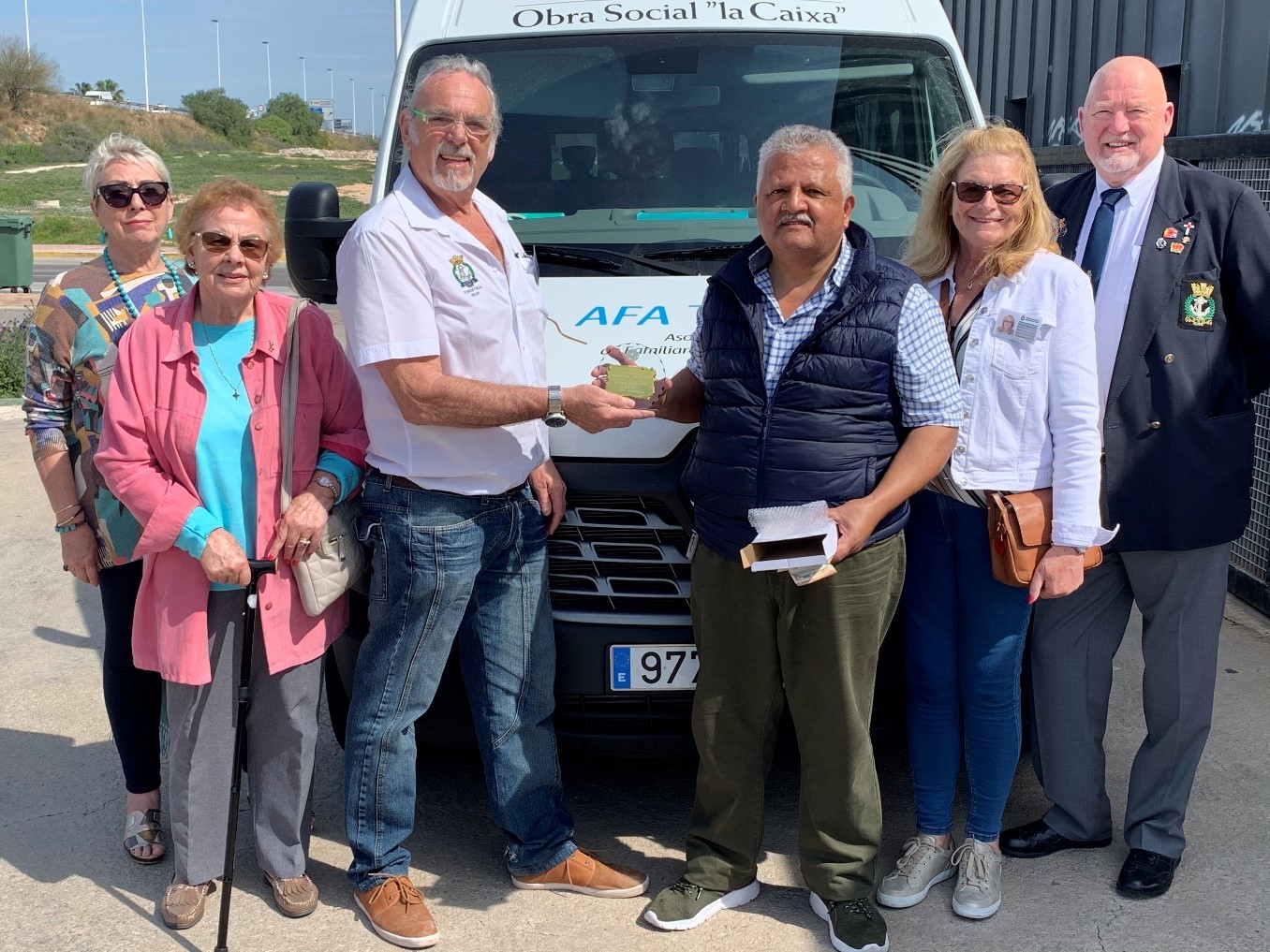 The donation presentation was made on the 13th March 2020 outside their facilities (see photo) in Torrevieja to Mario de Jesús Céspedes Villa who is one of the Vocal of the AFA Torrevieja by the RNA Torrevieja Branch Chairman Tony Jenkins, Vice-Chairman Danny Kay and Branch Secretary Margaret Forshaw along with branch members Rose Kay and Maureen Jenkins.
