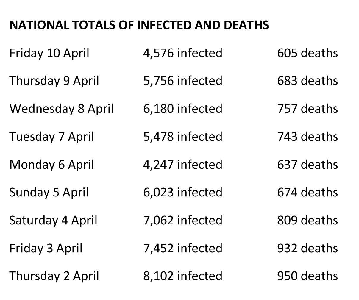A further 605 people have died in Spain since yesterday increasing the total figure to 15,843 and although the figure marks the lowest daily number of fatalities since March 24 there is still no room for celebration.