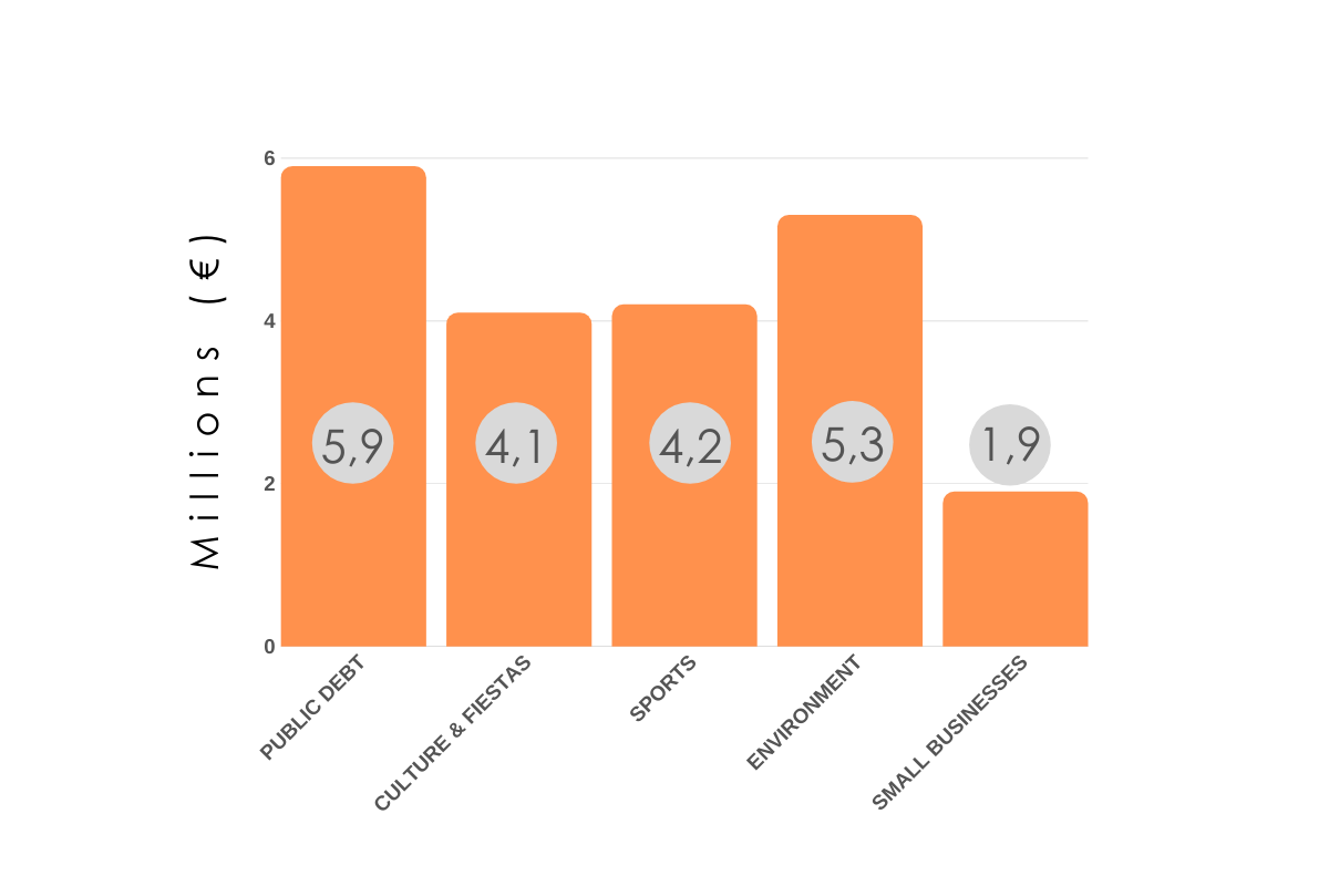 C.L.A.R.O. believes these proposals are necessary and affordable. The following table shows the small percentage of the current Orihuela budget devoted to small businesses, less than half of the budget for fiestas, many of which will obviously not take place this year. In a crisis expenditure should be diverted to essential activities.