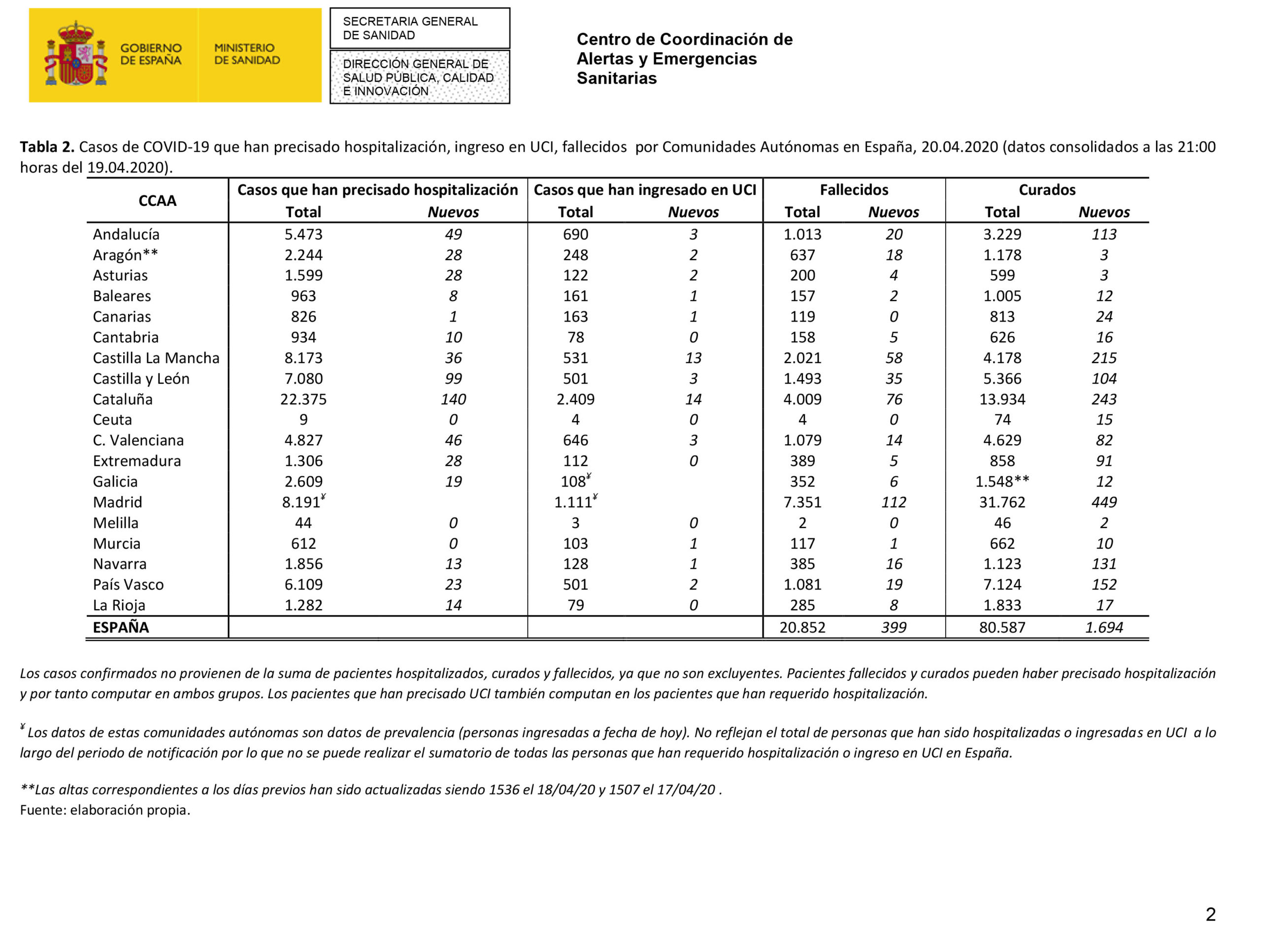 - In the last 24 hours, 89 new cases, 19 deaths and 82 discharges have been confirmed.
