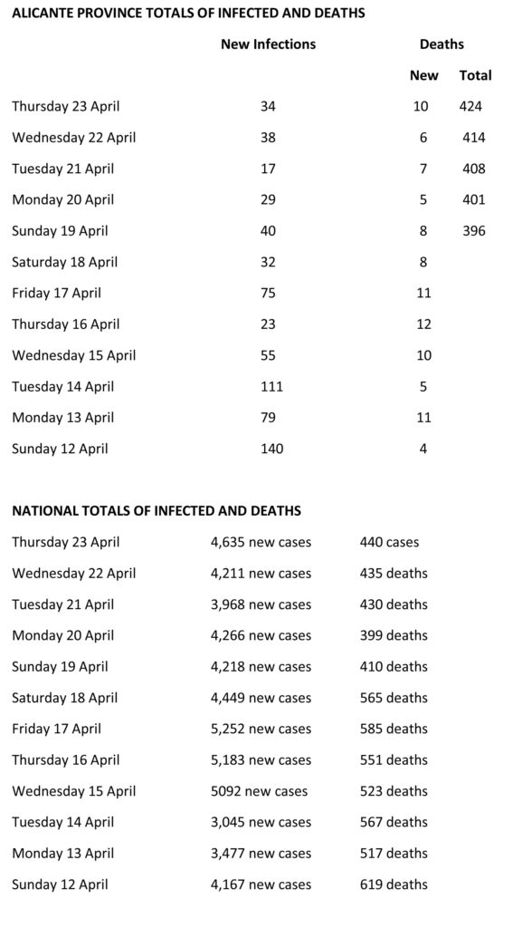 The number of Healthcare workers who have tested positive in total is 1,692, 630 active at this time (75 in the province of Castellón, 168 in Alicante and 387 in the province of Valencia).