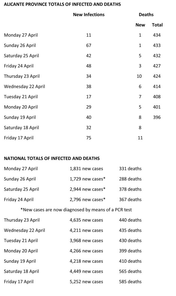 • The total number of deaths since the pandemic began is 434 in the Alicante Province and in the Valencian Community 1,194
