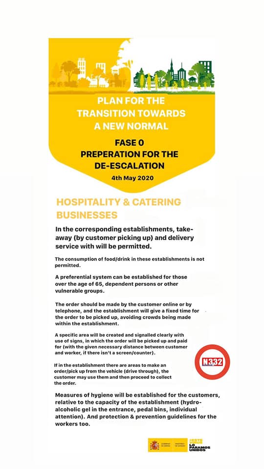 04/05/2020 – Information about bars / restaurants re-opening from today for takeaway/delivery service
