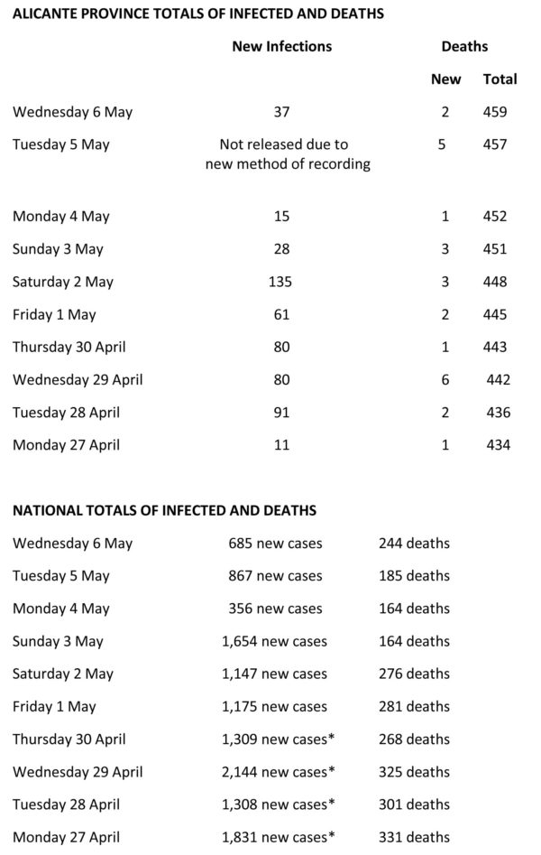 To date there have been a total of 1,302 deaths in the Valencian Community: 199 in the province of Castellón, 459 in Alicante and 644 in that of Valencia. There have been 13 deaths since the last update, just 2 in the province of Alicante.