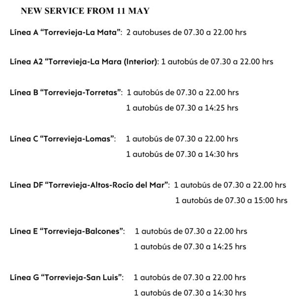 The Torrevieja councillor for Transport, Antonio Vidal, has announced that from next Monday, May 11, due to the increase in the number of users, the schedule of urban transport in the town will be increased to 80%.