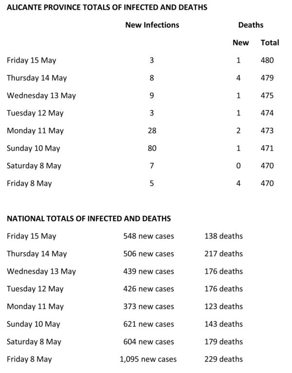 With the 9 new deaths registered in the last 24 hours the total figure since the start of the crisis is 1,373: 206 in the province of Castellón, 480 in Alicante and 687 in the province of Valencia. Just one of those deaths occurred in the province of Alicante in the last 24 hours.
