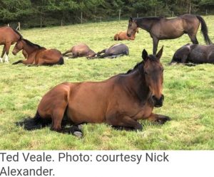 Ted Veale, a winner at the Cheltenham Festival, now 13 years old (pictured below relaxing) last ran at Newcastle on March 3, prior to racing lockdown, one of three races competed in this year, after running at Newcastle in February and January.