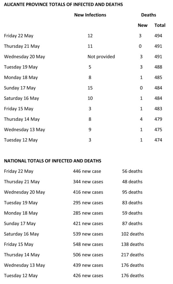 The coronavirus pandemic has left three more dead in the province of Alicante (494 in total) and 7 in the whole of the Valencian Community, according to data published by the Ministry of Health. In the province, there has been a slight rebound since the previous day, when there were no deaths from coronavirus .