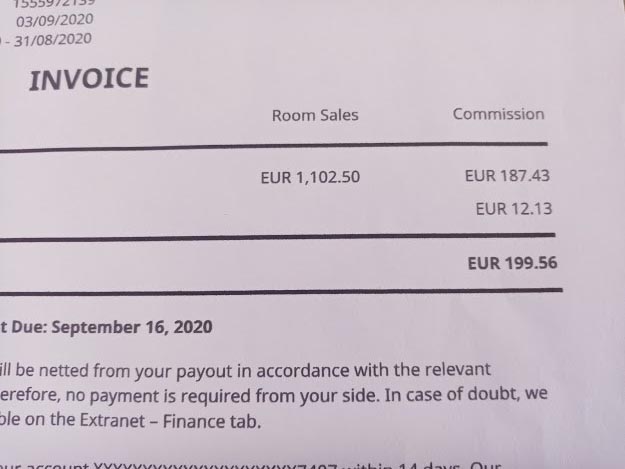 The second deduction of money was for €199.56 again taken out of our money which they owed us in early September.