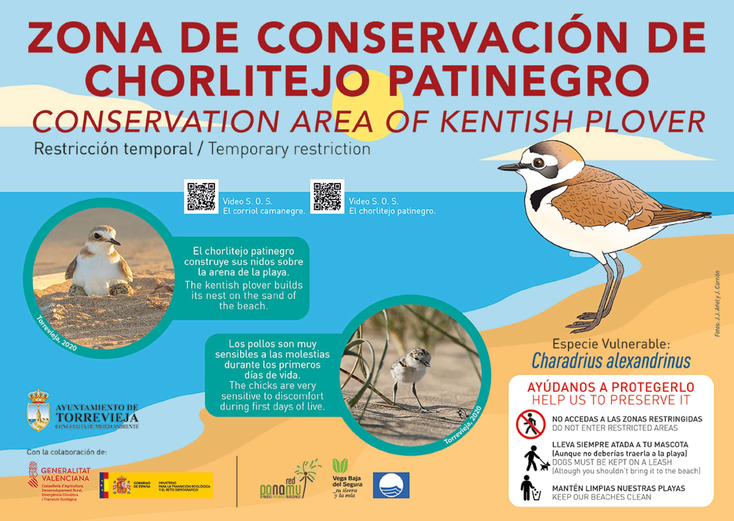 After the successful nesting of the Kentish Plover (Charadrius alexandrinus) in the Molino del Agua natural park last year, the Department of the Environment of Torrevieja council has redoubled the measures that had already been adopted by trying to make the use of the beaches compatible with the nesting of this species.