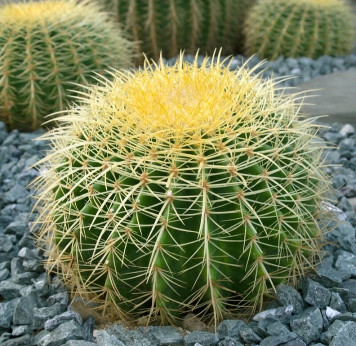 The Echinocactus Grusonii, aptly named the golden barrel cactus or golden ball, being almost perfectly round when juvenile.