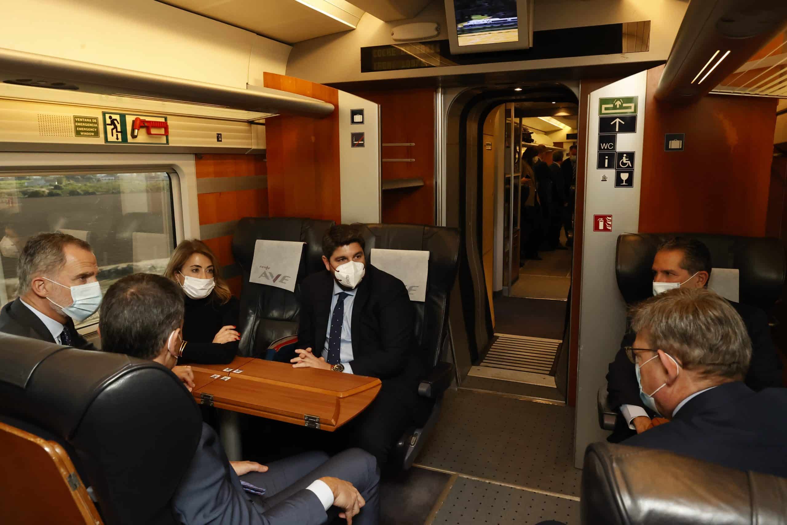 Amongst those accompanying him on the journey were the Prime Minister, Pedro Sanchez, the Minister of Transport, Raquel Sánchez; the President of the Murcia Community, Fernando López-Miras and the Secretary of State for Transport, Isabel Pardo de Vera.