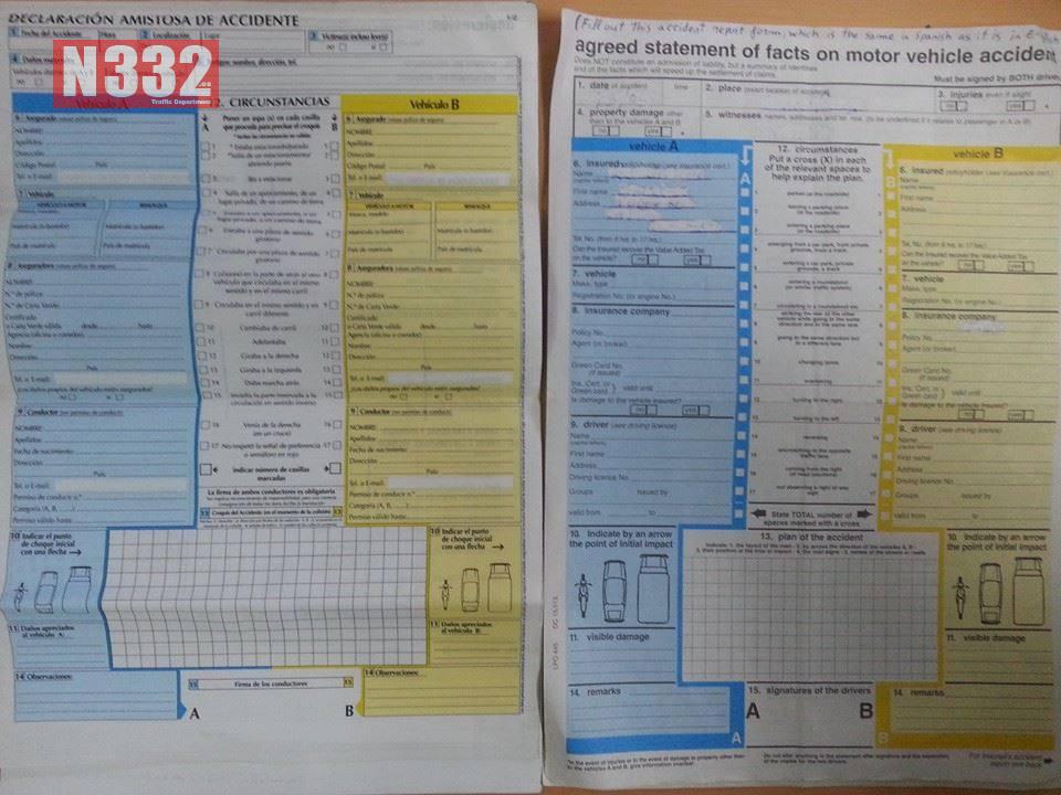 The European Accident Report Form, or “parte amistoso”, la Declaración Amistosa de Accidente (DAA) in Spanish, is a form you can obtain from your insurance company, and should be completed in the event of a collision on the road.